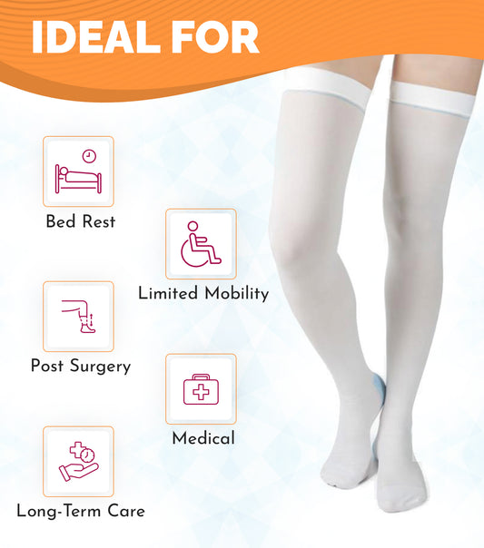 Anti-Embolism Stockings Thigh High, 15-20 mmHg, White