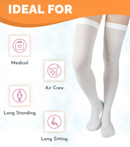 Anti-Embolism Stockings Thigh High, 15-20 mmHg, White